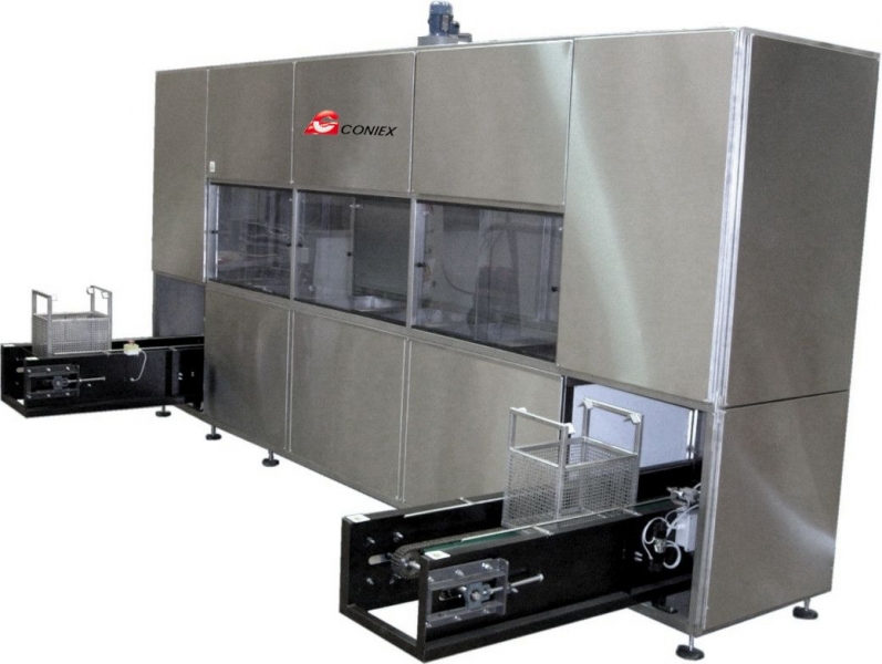 The installation in continuous line can be used to clean the parts placed in racks, in a conveyor belt, or in baskets.